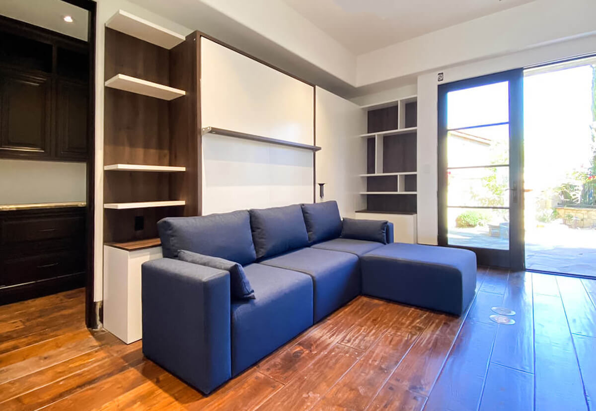Enhance your home with the Royal Queen Murphy Bed with Sectional Sofa and Bookcase Set, combining elegance and functionality. This versatile wall bed offers a comfortable sleeping area, stylish sectional sofa, and ample storage with integrated bookcases. Perfect for maximizing space in any room, it blends modern design with practical convenience.