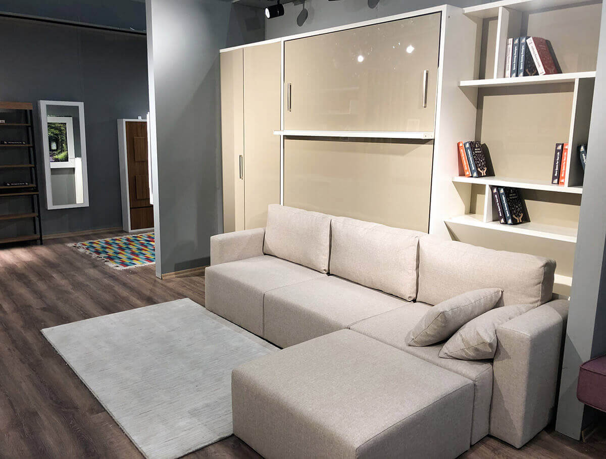 Transform your living space with the Royal Queen Murphy Bed with Sectional Sofa and Bookcase Set, offering a stylish blend of comfort and storage. This multifunctional setup includes a queen-sized bed, a chic sectional sofa, and integrated bookcases for added organization. Ideal for modern homes, it maximizes space without sacrificing elegance.